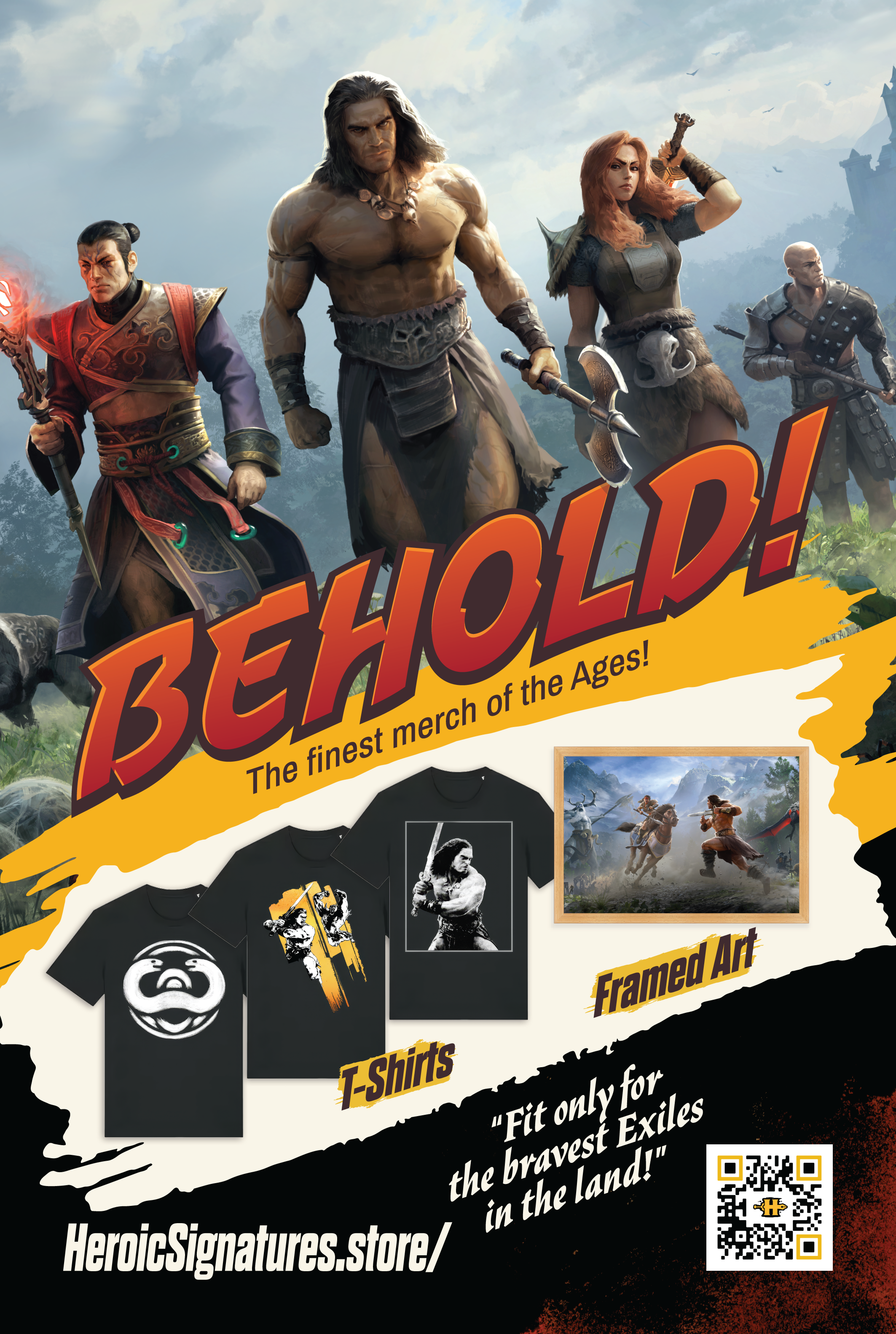 Advertisement designs for the Heroic Signatures online store, for print in Conan the Barbarian comic book issues.
